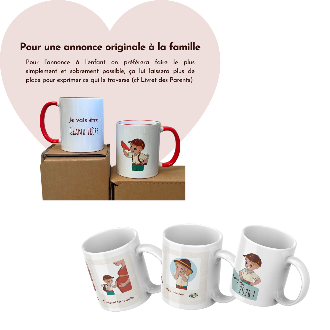 Faire une annonce originale à la famille : mugs, cartes, ..